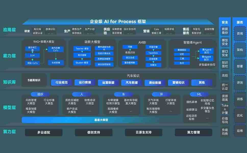 乐金城问学智车解决方案是一套基于AI技术的汽车行业智能化系统,,覆盖从底层算力到顶层AI应用的全栈方案。。方案由算力层、、模型层和应用层组成:算力层,,,方案支持多种一体机配置,,,,具备云端灵活部署、、、、多云适配以及动态优化计算资源的能力;模型层,,乐金城问学平台版提供了企业级AI应用一站式构建与管理平台,,,支持基于后训练强化技术的汽车企业专属模型的训练、、、评测和运营;应用层,,,,乐金城问学DeepSeek版提供包括超级员工、、智能招采、、、智能营销、、、智能客服、、、AI for BI等一系列解决方案,,可助力汽车行业实现数字化转型,,,让管理更智能、、、、响应更敏捷。。